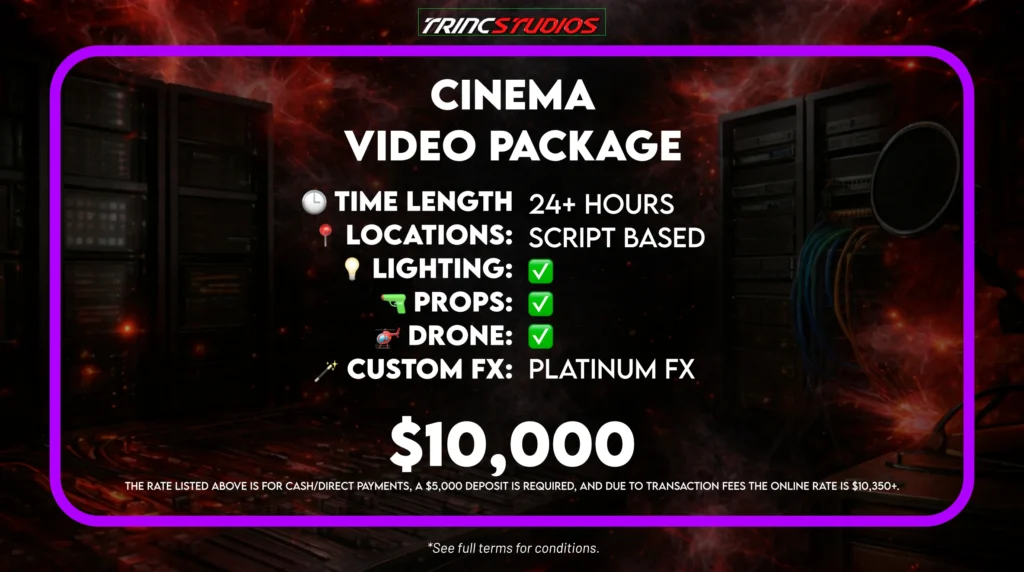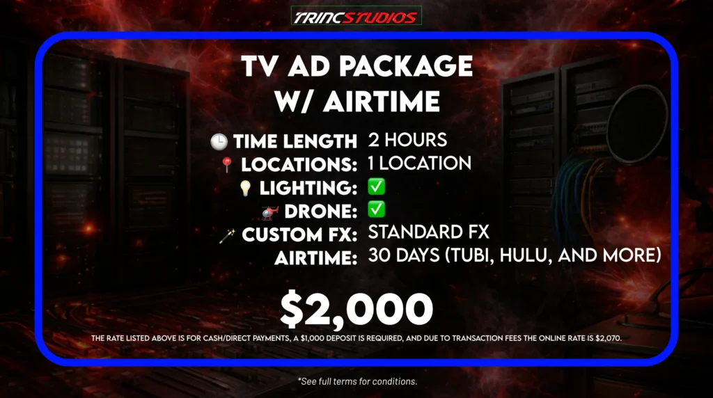Trinc Studios provides complete film and commercial packages for your brand. First, we manage your project from the first idea to the final cut. Our crew usesPro Gearfor every shoot to ensure a polished, cinematic result. Specifically, our editing team follows strict broadcast rules. This makes your content ready for major networks like Tubi or ESPN. Furthermore, we ensure every film meets the technical needs for a professional global release. In addition, we focus on high-end visual stories that grab the audience’s attention. In short, we provide the technical polish you need to compete at the top level.Fill out the booking formto start your elite production today.