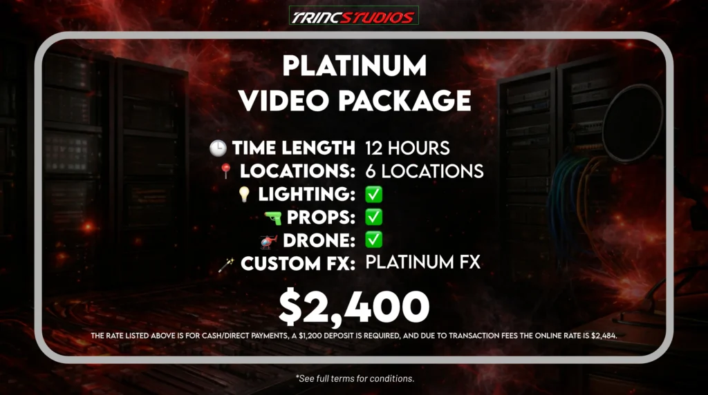 Trinc Studios creates high-quality commercials and music videos for many brands. First, we focus on visual stories that grab the audience’s attention. Our team uses Pro Gear like professional lighting and 4K Lumix cameras for every shoot. Furthermore, we work with many artists to bring their music to life through expert direction. Consequently, these music videos help creators grow on YouTube and social media. In short, we provide the technical polish you need to compete at the top level. Specifically, you can view our work in the reels below. These videos show how we use cinematic angles to yield industry-standard results for our clients. Fill out the booking form to start your project today.